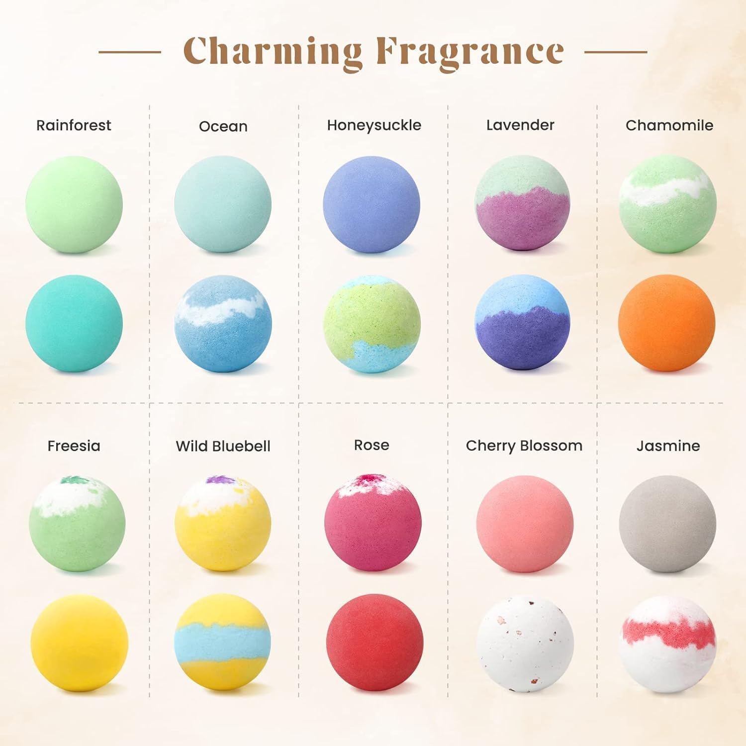 - High-quality Raw Materials:10 different fragrances including rainforest, chamomile, cherry blossoms, lavender, honeysuckle, freesia, rose, jasmine, bluebell and ocean. Fragrances are handmade, natural, organic, and preservative-free;